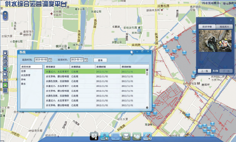 化、供水综合信息集成化、供水管网数据服务化,实现供水管网空间和属性数据统一动态管理,为供水管